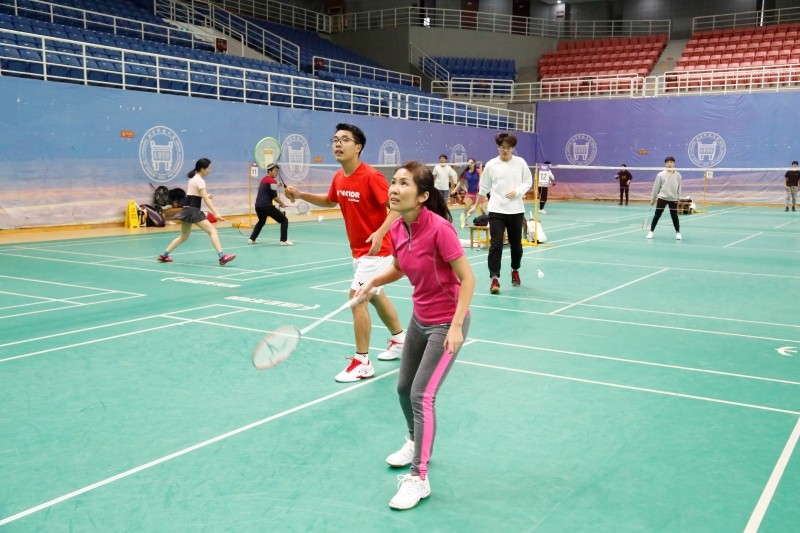 为丰富材料学院师生的业余文体生活,营造健康积极的校园文化氛围,增强师生凝聚力和荣誉感,提高师生的身体素质,养成良好的体育锻炼习惯,传播青春正能量,英国上市公司365第一届师生羽毛球比赛于2021年10月20日中午在体育馆羽毛球场成功举办,本次比赛有30名教师,12名学生组成的21支队伍参加,比赛分为男双、女双、混双三个类别开展。比赛开始前,各师生队伍代表进行了赛程抽签,热身活动后参赛队员在比赛场地就位,听从裁判员的安排开始比赛。